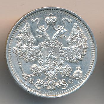 Лицевая сторона — гербовый орел, оборотная —обозначение номинала (15 копеекъ), окруженное венком из лавровой и дубовой ветвей и дата.