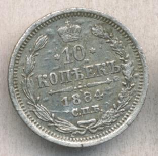 Лицевая сторона — гербовый орел, оборотная —обозначение номинала (10 копеекъ), окруженное венком из лавровой и дубовой ветвей и дата.
