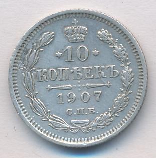 Лицевая сторона — гербовый орел, оборотная —обозначение номинала (10 копеекъ), окруженное венком из лавровой и дубовой ветвей и дата.