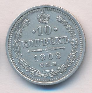 Лицевая сторона — гербовый орел, оборотная —обозначение номинала (10 копеекъ), окруженное венком из лавровой и дубовой ветвей и дата.