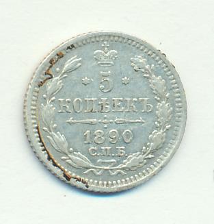 Лицевая сторона — гербовый орел, оборотная —обозначение номинала (5 копеекъ), окруженное венком из лавровой и дубовой ветвей и дата.