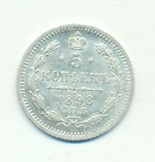 Лицевая сторона — гербовый орел, оборотная —обозначение номинала (5 копеекъ), окруженное венком из лавровой и дубовой ветвей и дата.