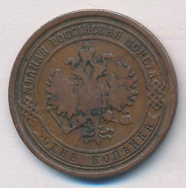 Лицевая сторона — двуглавый орел, надпись МЕДНАЯ РОССIЙСКАЯ МОНЕТА и обозначение номинала (одна копейка); оборотная — обозначение номинала (1 копейка) в бусовом ободке и дата. Нормативный вес — 3,28 грамма, гурт рубчатый.