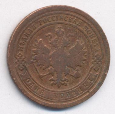 Лицевая сторона — двуглавый орел, надпись МЕДНАЯ РОССIЙСКАЯ МОНЕТА и обозначение номинала (одна копейка); оборотная — обозначение номинала (1 копейка) в бусовом ободке и дата. Нормативный вес — 3,28 грамма, гурт рубчатый.