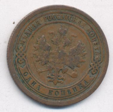 Лицевая сторона — двуглавый орел, надпись МЕДНАЯ РОССIЙСКАЯ МОНЕТА и обозначение номинала (одна копейка); оборотная — обозначение номинала (1 копейка) в бусовом ободке и дата. Нормативный вес — 3,28 грамма, гурт рубчатый.