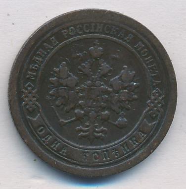Лицевая сторона — двуглавый орел, надпись МЕДНАЯ РОССIЙСКАЯ МОНЕТА и обозначение номинала (одна копейка); оборотная — обозначение номинала (1 копейка) в бусовом ободке и дата. Нормативный вес — 3,28 грамма, гурт рубчатый.