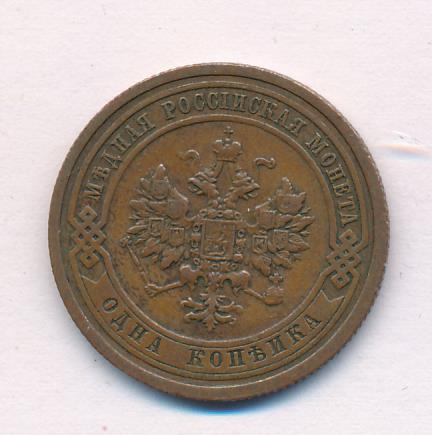 Лицевая сторона — двуглавый орел, надпись МЕДНАЯ РОССIЙСКАЯ МОНЕТА и обозначение номинала (одна копейка); оборотная — обозначение номинала (1 копейка) в бусовом ободке и дата. Нормативный вес — 3,28 грамма, гурт рубчатый.