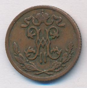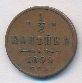 Лицевая сторона — вензель Александра II в венке из лавровой и дубовой ветвей; оборотная — обозначение номинала (1/2 копейки) и дата. Нормативный вес — 1,64 грамма, гурт рубчатый.