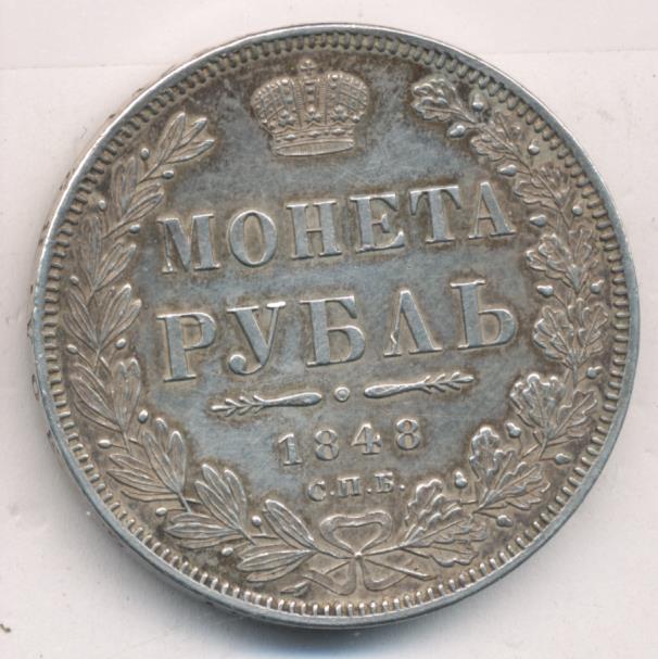 Лицевая сторона — новый гербовый орел с поднятыми крыльями и надпись «ЧИСТОГО СЕРЕБРА 4 ЗОЛОТНИКА 21 ДОЛЯ», оборотная — надпись «МОНЕТА РУБЛЬ», окруженная венком из лавровой и дубовой ветвей и дата.