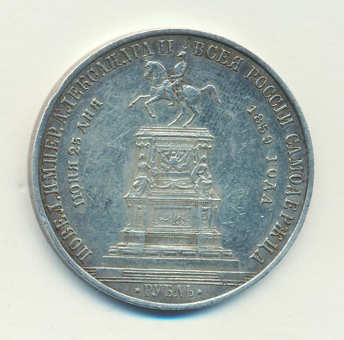 Единственной памятной монетой, выпущенной в правление Александра II, стал рубль на открытие памятника Николаю I в Санкт-Петербурге. Выпуск был приурочен ко дню торжественного открытия 25 июня 1859 года (день рождения Николая Павловича).
