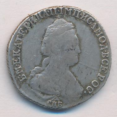 Выделяют два типа - «шея длиннее» и «шея короче». Лицевая сторона — портрет императрицы и надпись «Б М ЕКАТЕРИНА II IМП И САМОД ВСЕРОСС», оборотная — двуглавый орел, обозначение номинала цифрой и счетными точками и дата.