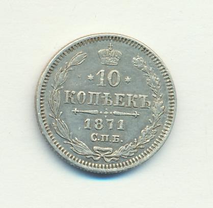 Лицевая сторона — гербовый орел, оборотная —обозначение номинала (10 копеекъ), окруженное венком из лавровой и дубовой ветвей и дата.