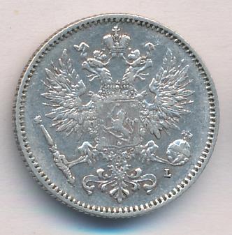 Лицевая сторона — российский двуглавый орел с гербом Великого княжества Финляндского на груди, оборотная — номинал и дата в венке из дубовых листьев. Проба — 750, нормативный вес — 2,55 грамма, гурт рубчатый.