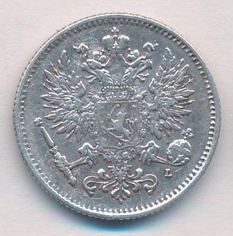Лицевая сторона — российский двуглавый орел с гербом Великого княжества Финляндского на груди, оборотная — номинал и дата в венке из дубовых листьев. Проба — 750, нормативный вес — 2,55 грамма, гурт рубчатый.