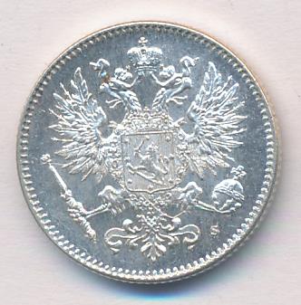 Лицевая сторона — российский двуглавый орел с гербом Великого княжества Финляндского на груди, оборотная — номинал и дата в венке из дубовых листьев. Проба — 750, нормативный вес — 2,55 грамма, гурт рубчатый.