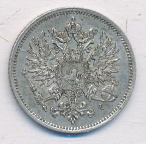 Лицевая сторона — российский двуглавый орел с гербом Великого княжества Финляндского на груди, оборотная — номинал и дата в венке из дубовых листьев. Проба — 750, нормативный вес — 1,27 грамма, гурт рубчатый.