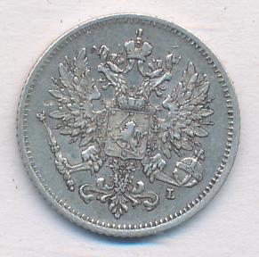 Лицевая сторона — российский двуглавый орел с гербом Великого княжества Финляндского на груди, оборотная — номинал и дата в венке из дубовых листьев. Проба — 750, нормативный вес — 1,27 грамма, гурт рубчатый.