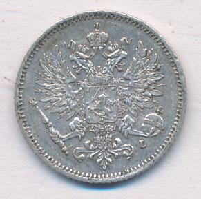 Лицевая сторона — российский двуглавый орел с гербом Великого княжества Финляндского на груди, оборотная — номинал и дата в венке из дубовых листьев. Проба — 750, нормативный вес — 1,27 грамма, гурт рубчатый.