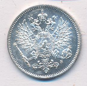 Лицевая сторона — российский двуглавый орел с гербом Великого княжества Финляндского на груди, оборотная — номинал и дата в венке из дубовых листьев. Проба — 750, нормативный вес — 1,27 грамма, гурт рубчатый.