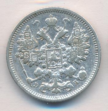 Лицевая сторона — гербовый орел, оборотная —обозначение номинала (15 копеекъ), окруженное венком из лавровой и дубовой ветвей и дата.