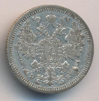 Лицевая сторона — гербовый орел, оборотная —обозначение номинала (15 копеекъ), окруженное венком из лавровой и дубовой ветвей и дата.