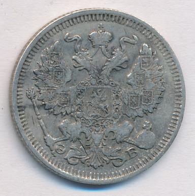 Лицевая сторона — гербовый орел, оборотная —обозначение номинала (20 копеекъ), окруженное венком из лавровой и дубовой ветвей и дата.