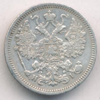 Лицевая сторона — гербовый орел, оборотная —обозначение номинала (15 копеекъ), окруженное венком из лавровой и дубовой ветвей и дата.