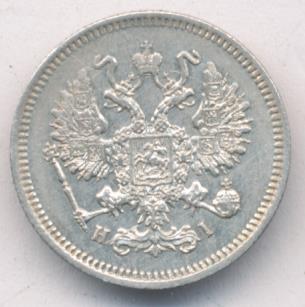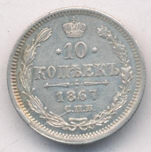 Лицевая сторона — гербовый орел, оборотная —обозначение номинала (10 копеекъ), окруженное венком из лавровой и дубовой ветвей и дата.