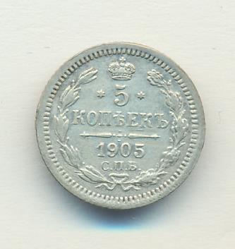 Лицевая сторона — гербовый орел, оборотная —обозначение номинала (5 копеекъ), окруженное венком из лавровой и дубовой ветвей и дата.