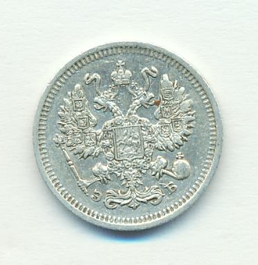 Лицевая сторона — гербовый орел, оборотная —обозначение номинала (10 копеекъ), окруженное венком из лавровой и дубовой ветвей и дата.
