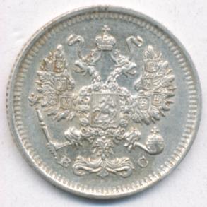 Лицевая сторона — гербовый орел, оборотная —обозначение номинала (10 копеекъ), окруженное венком из лавровой и дубовой ветвей и дата.