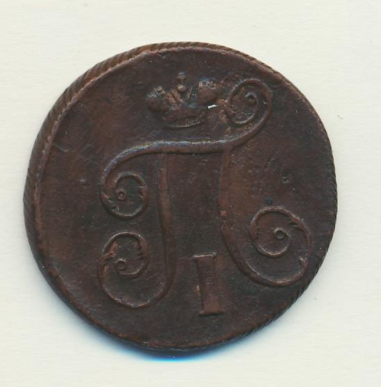 Лицевая сторона — вензель Павла I под короной, оборотная — номинал (1 копейка) и дата. Нормативный вес — 10,24 грамма, гурт — шнур.