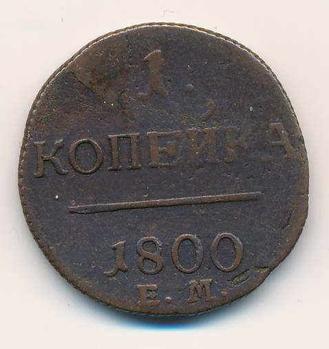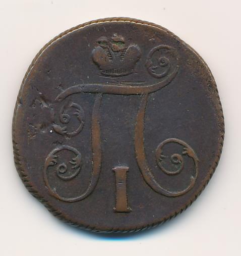 Лицевая сторона — вензель Павла I под короной, оборотная — номинал (1 копейка) и дата. Нормативный вес — 10,24 грамма, гурт — шнур.