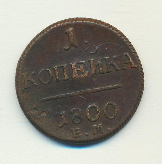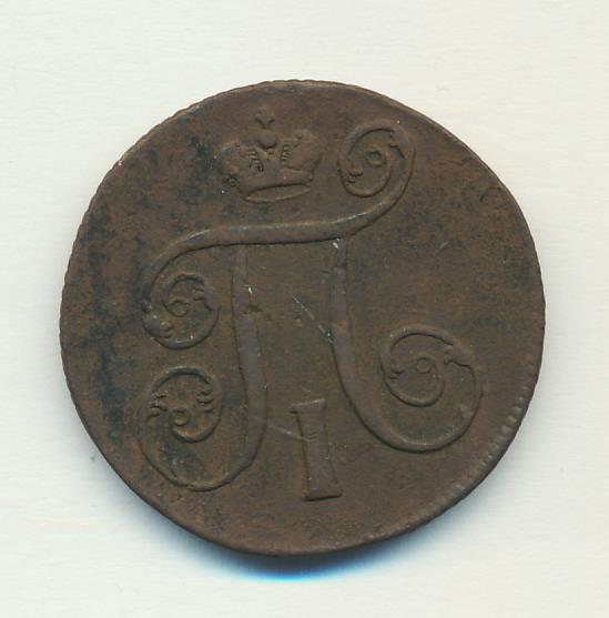 Лицевая сторона — вензель Павла I под короной, оборотная — номинал (1 копейка) и дата. Нормативный вес — 10,24 грамма, гурт — шнур.