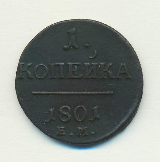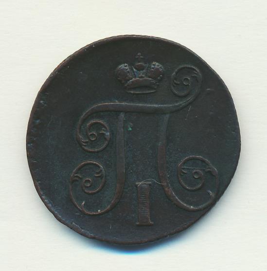 Лицевая сторона — вензель Павла I под короной, оборотная — номинал (1 копейка) и дата. Нормативный вес — 10,24 грамма, гурт — шнур.