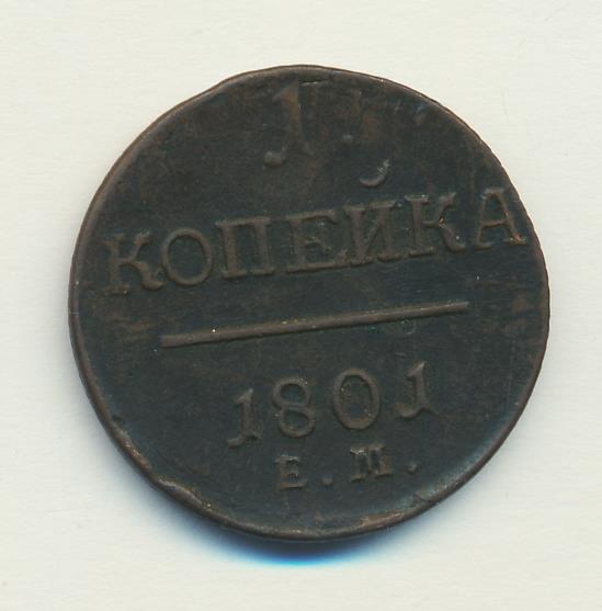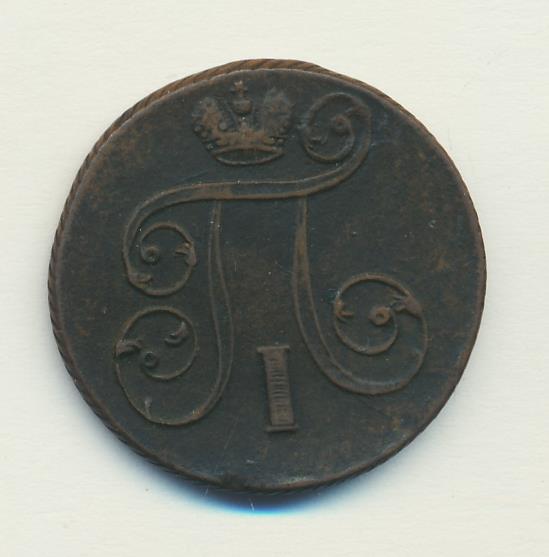 Лицевая сторона — вензель Павла I под короной, оборотная — номинал (1 копейка) и дата. Нормативный вес — 10,24 грамма, гурт — шнур.