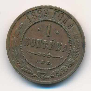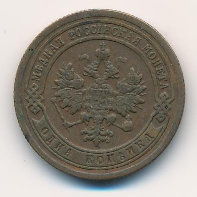 Лицевая сторона — двуглавый орел, надпись МЕДНАЯ РОССIЙСКАЯ МОНЕТА и обозначение номинала (одна копейка); оборотная — обозначение номинала (1 копейка) в бусовом ободке и дата. Нормативный вес — 3,28 грамма, гурт рубчатый.