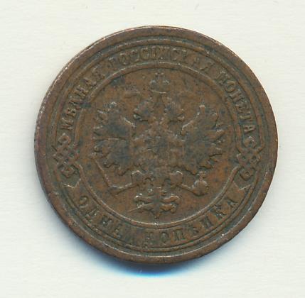 Лицевая сторона — двуглавый орел, надпись МЕДНАЯ РОССIЙСКАЯ МОНЕТА и обозначение номинала (одна копейка); оборотная — обозначение номинала (1 копейка) в бусовом ободке и дата. Нормативный вес — 3,28 грамма, гурт рубчатый.