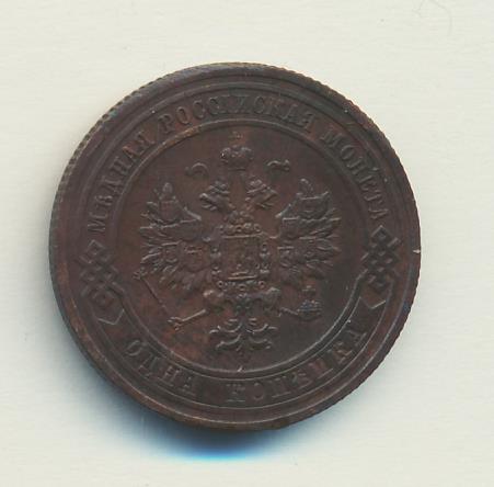 Лицевая сторона — двуглавый орел, надпись МЕДНАЯ РОССIЙСКАЯ МОНЕТА и обозначение номинала (одна копейка); оборотная — обозначение номинала (1 копейка) в бусовом ободке и дата. Нормативный вес — 3,28 грамма, гурт рубчатый.