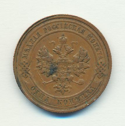 Лицевая сторона — двуглавый орел, надпись МЕДНАЯ РОССIЙСКАЯ МОНЕТА и обозначение номинала (одна копейка); оборотная — обозначение номинала (1 копейка) в бусовом ободке и дата. Нормативный вес — 3,28 грамма, гурт рубчатый.