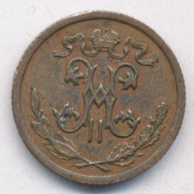 Лицевая сторона — вензель Александра II в венке из лавровой и дубовой ветвей; оборотная — обозначение номинала (1/2 копейки) и дата. Нормативный вес — 1,64 грамма, гурт рубчатый.