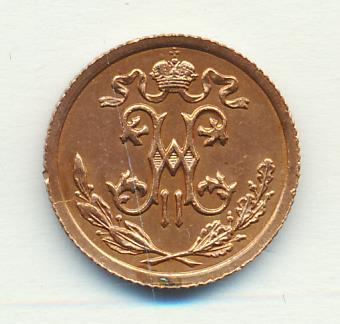 Указом от 21 марта 1867 года Александр II утверждает 50-рублевую стопу для медных монет. Новые монеты получают усложненное оформление, дополнительным отличием от прежних выпусков служит рубчатый гурт (чеканка ведется без предварительного гурчения кружков в неразъемном рубчатом кольце).