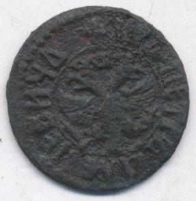 На лицевой стороне — гербовый орел и надпись «царь петр алексеевич», на оборотной - «всея россии самодержец» и обозначение номинала (полушка).