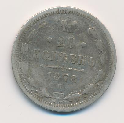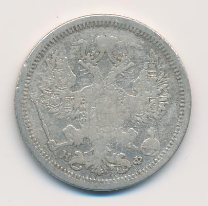 Лицевая сторона — гербовый орел, оборотная —обозначение номинала (20 копеекъ), окруженное венком из лавровой и дубовой ветвей и дата.