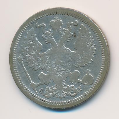 Лицевая сторона — гербовый орел, оборотная —обозначение номинала (20 копеекъ), окруженное венком из лавровой и дубовой ветвей и дата.