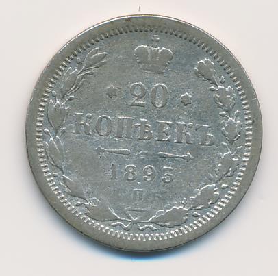 Лицевая сторона — гербовый орел, оборотная —обозначение номинала (20 копеекъ), окруженное венком из лавровой и дубовой ветвей и дата.