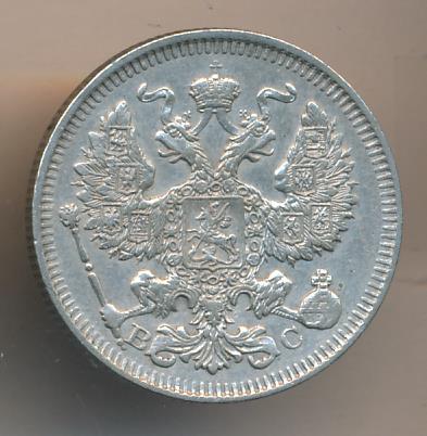 Лицевая сторона — гербовый орел, оборотная —обозначение номинала (20 копеекъ), окруженное венком из лавровой и дубовой ветвей и дата.