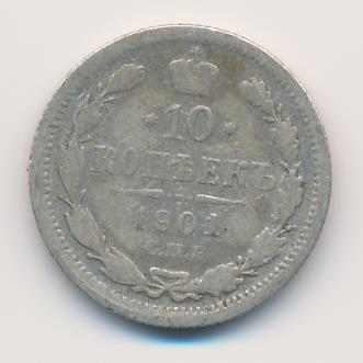 Лицевая сторона — гербовый орел, оборотная —обозначение номинала (10 копеекъ), окруженное венком из лавровой и дубовой ветвей и дата.
