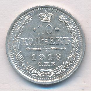 Лицевая сторона — гербовый орел, оборотная —обозначение номинала (10 копеекъ), окруженное венком из лавровой и дубовой ветвей и дата.