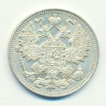 Лицевая сторона — гербовый орел, оборотная —обозначение номинала (15 копеекъ), окруженное венком из лавровой и дубовой ветвей и дата.